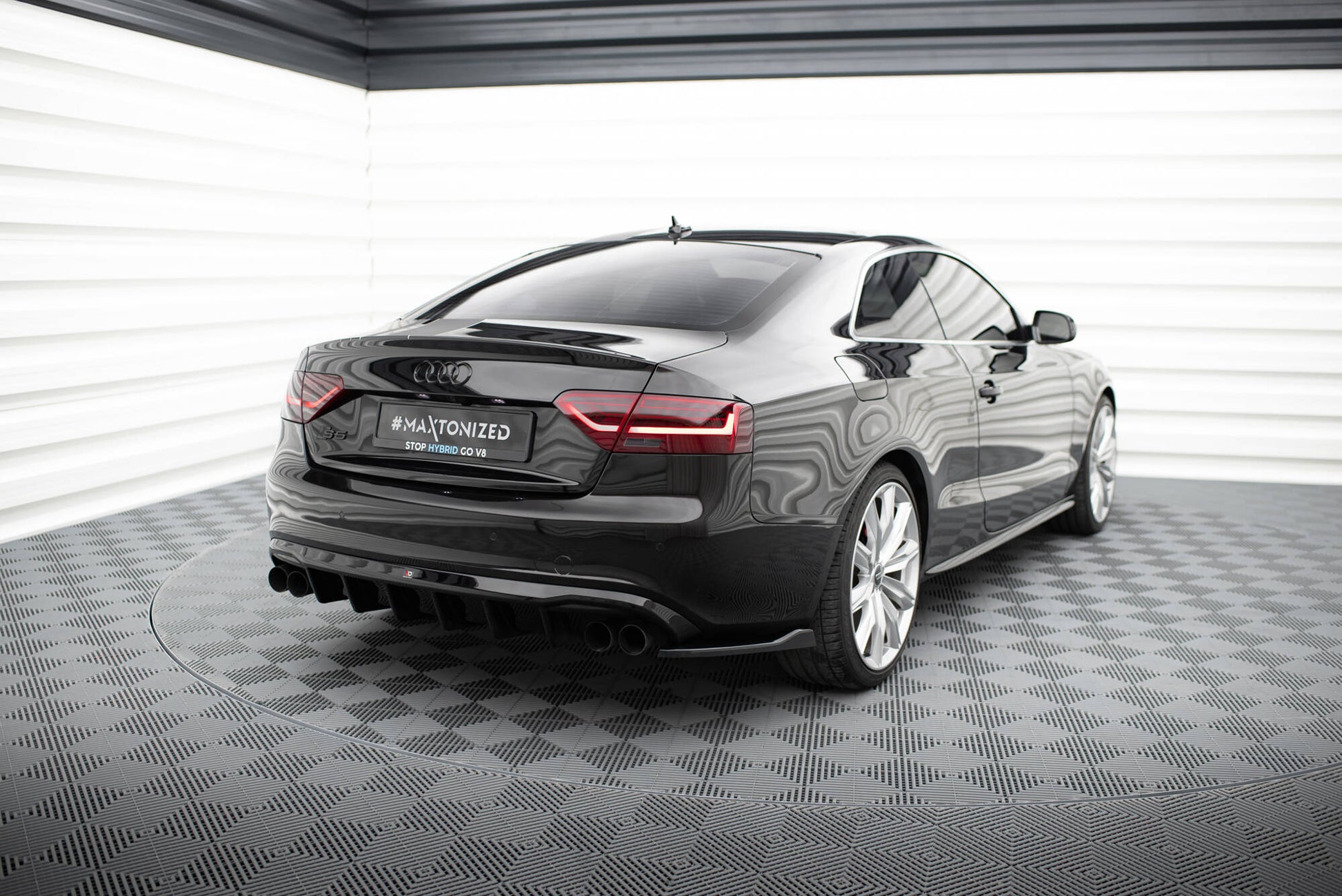 De avancerede Maxton-designindstillingselementer vil helt sikkert falde i smagen af selv de mest kræsne kunder, der ønsker, at deres trimning skal være funktionel, men også iøjnefaldende og stilfuld på samme tid. Dette polske selskab har deltaget på markedet siden 2006 og har fokuseret på at designe og fremstille diffusorer af høj kvalitet, splitter, spoilere, kofangere og sideskørter. Alle disse produkter er certificeret med TUV -materialecertificering. Det polske brand er en af de vigtigste konkurrenter blandt producenterne af optisk køretøjsindstilling på det internationale marked. Audi S5 / A5 S-Line Coupe / Convertible 8T er en af de modeller, som vi kan tilbyde varer til, og disse bagsideopdelinger er en af dem.