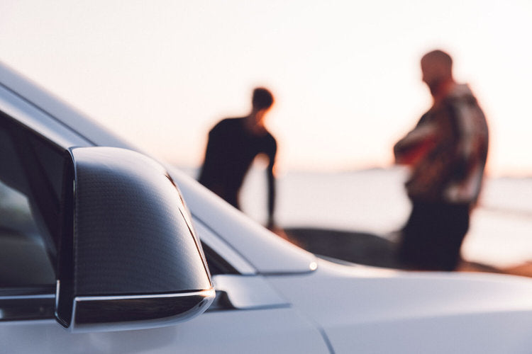 Sidospelgar i riktigt kolfiber, blankt utseende.