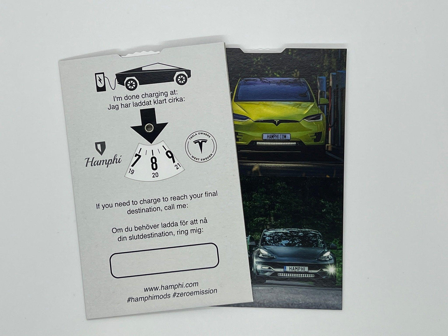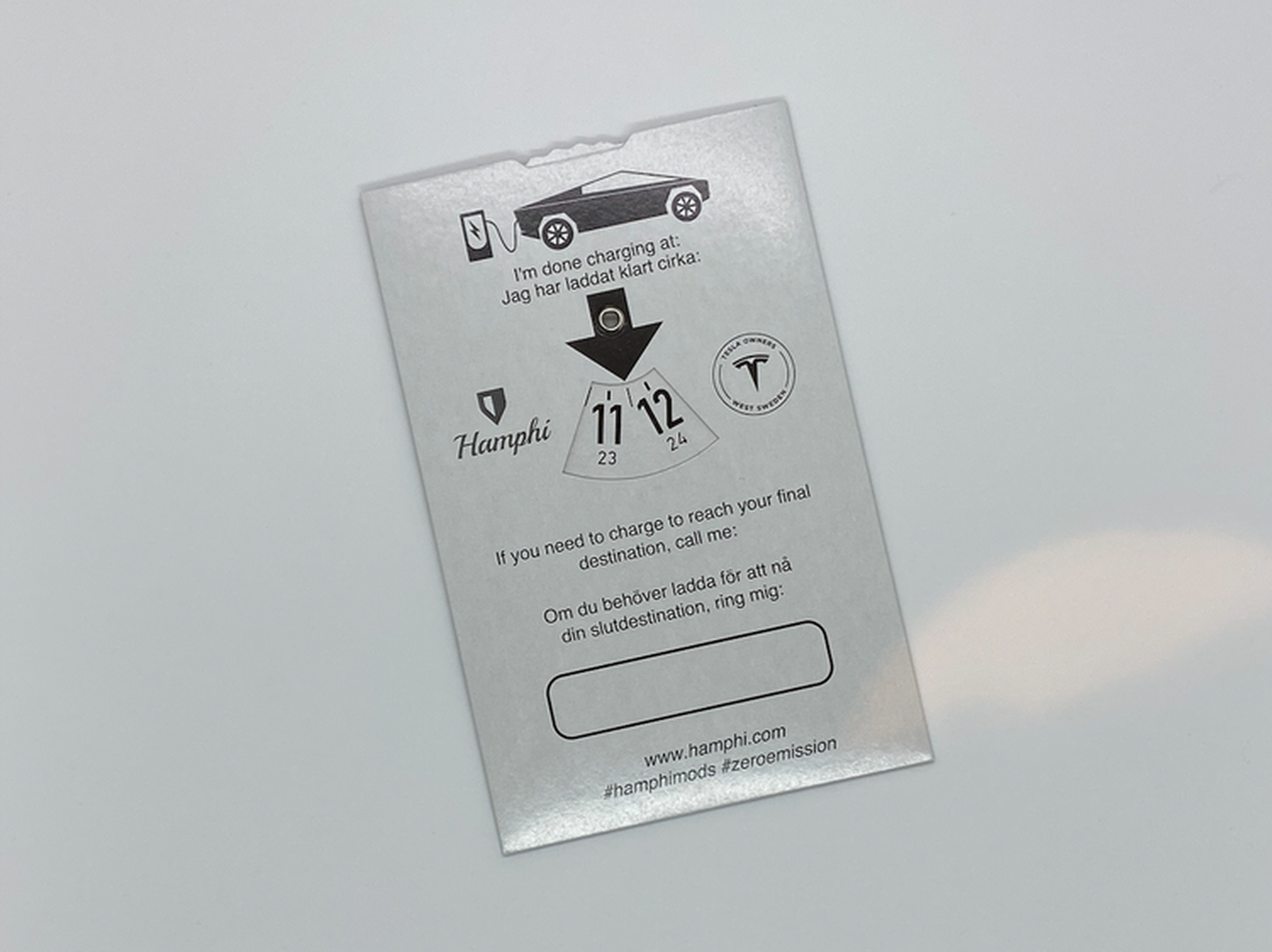 Vår alldeles egna design på en p-skiva avsedd för hur länge du planerar att ladda ditt fordon!