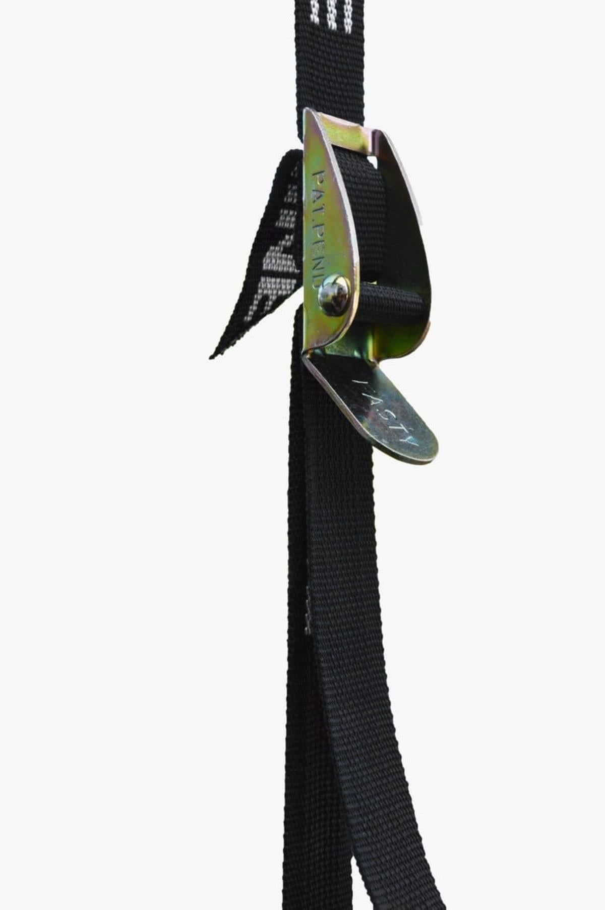 2 Remmar (25mm x 4m), 4 Plattor och 8 Skruvar.