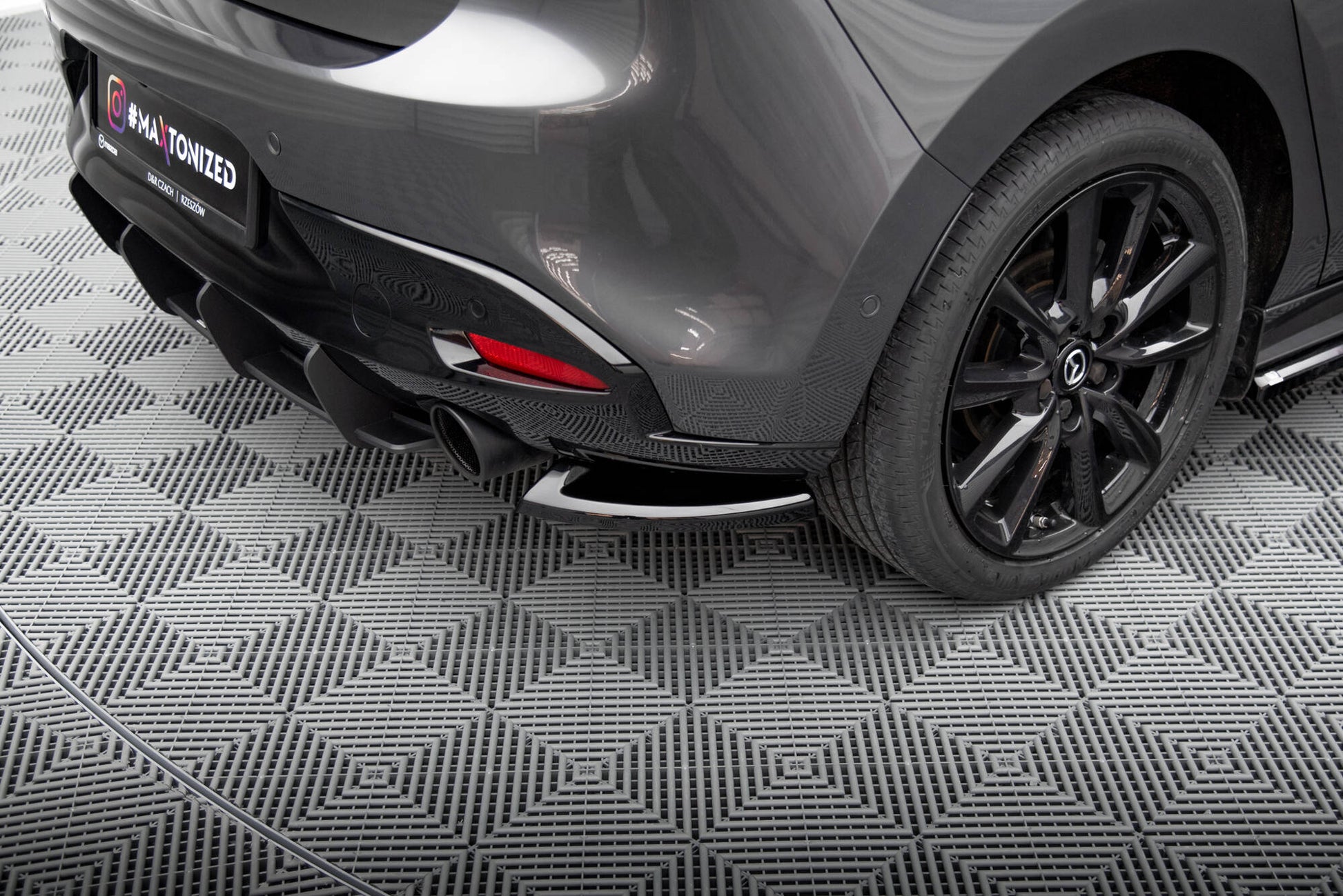 För att tillverka bakre sido splitters för Mazda 3 Mk4 använder vi ABS-plast av hög kvalitet. Detta material var ursprungligen tänkt att användas främst inom bilindustrin, därav dess funktionella egenskaper som hög hållbarhet, elasticitet och okänslighet för hårda väderförhållanden. ABS kommer inte att deformeras under påverkan av fukt eller höga och låga temperaturer. Den är även toppad med en speciell beläggning som säkrar den mot UV-strålning. ABS är idealiskt för att skapa standardfordonsutrustning, såväl som estetiska visuella inställningselement.