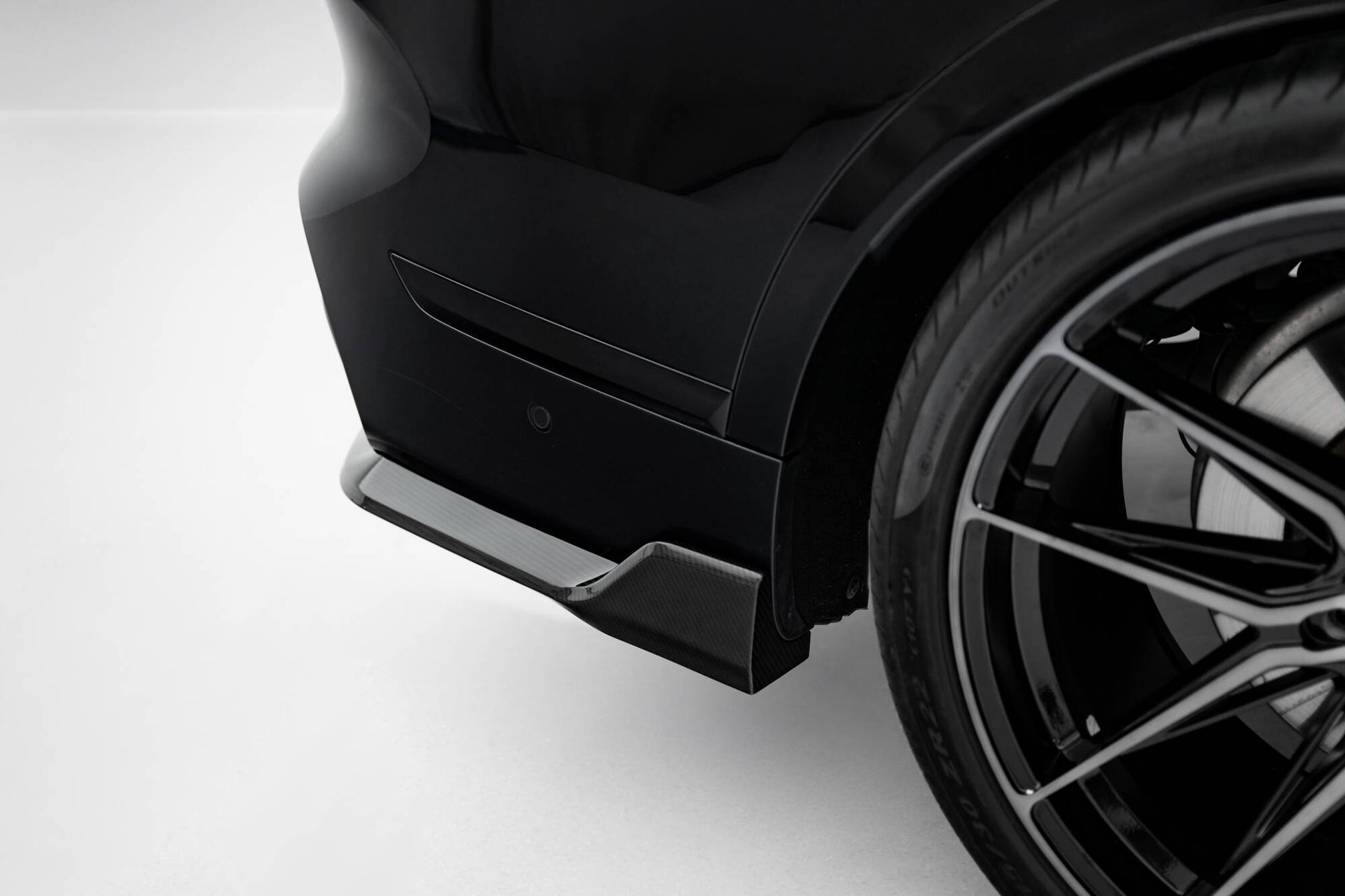 Carbon Set sänker kroppen. Som ett resultat minskar luftflödesutrymmet framtill under bilen med 2 centimeter. Alla element är försedda med monteringshål. Dessa hål låter dig undvika att störa elementets struktur och minskar därför inte dess styrka.