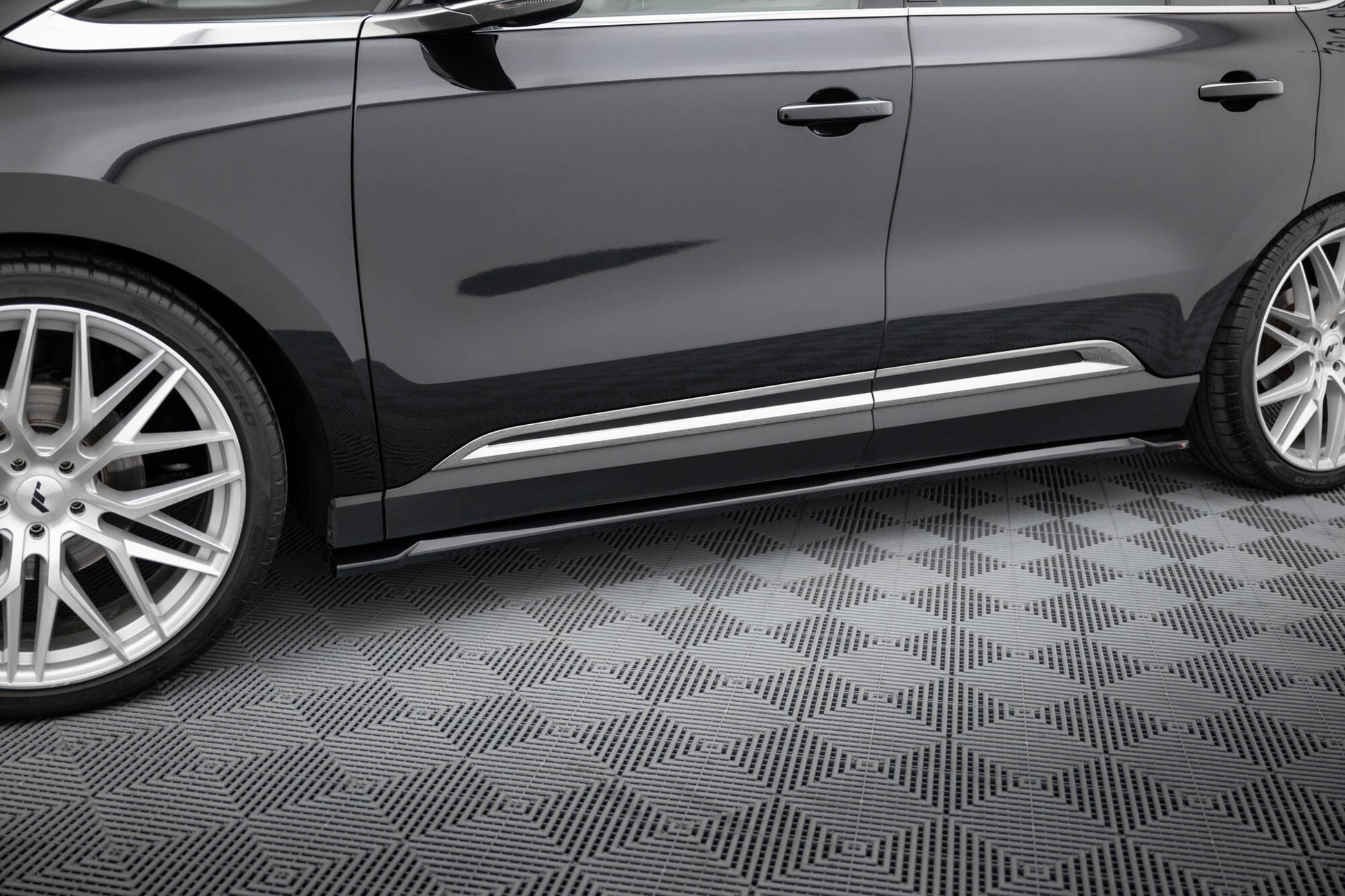 Renault Espace Mk5 Facelift Sidokjolar-diffusorer orsakar visuell sänkning av fordonets kaross och bidrar till dess racingsilhuett. De knyter ihop trimelementen fram och bak på bilen och skapar en estetiskt tilltalande komposition. Dessa Sidokjolar diffusorer levereras med en monteringssats ingår.
