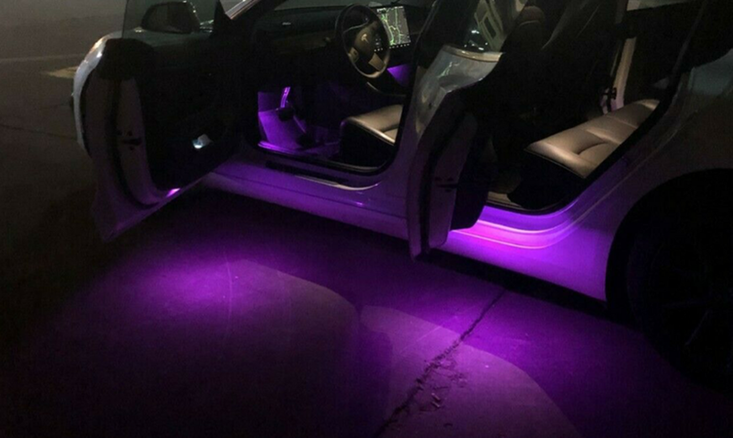 Model Y har 9 st lampor, 4 st i dörrarna, 4 st i fotutrymmet och 1 st i handskfacket.